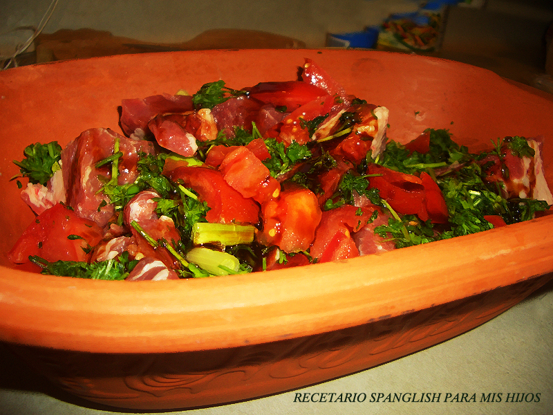 Se ubica la tapa de la clay pot y se pone en horno FRÍO a 400o F (temperatura bien baja) y allí se deja por una hora, a verificar según el corte de carne.